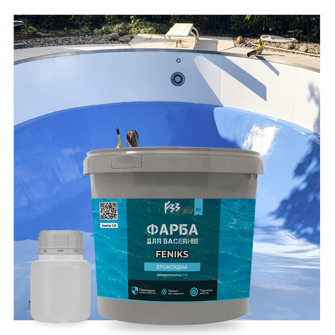 Епоксидна фарба для басейну FENIKS є хорошим варіантом для фарбування басейнів з бетону та металевих поверхонь. Вона має високу якість і характеристики, а також не має запаху.